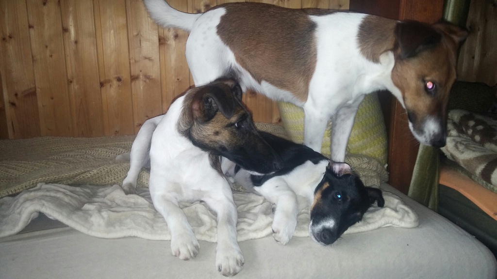 A Wurf vom 17.10.2017 1Rüde schwarz weiss, 3 Hündinnen braun-weiss